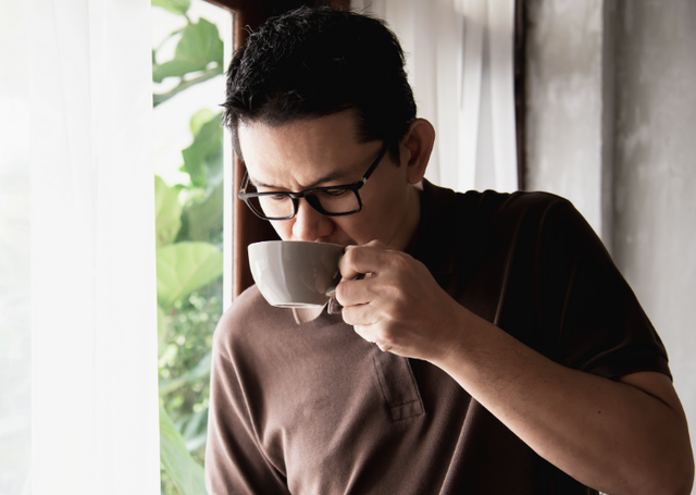 Cà phê vừa chứa lượng lớn caffeine, vừa có thêm đường sẽ khiến quan đến cơ thể dễ gặp tình trạng mất nước, khô da, gia tốc quá trình lão hoá.Do đó, để trì hoãn quá trình này, các chuyên gia khuyến nghị nam giới nên dùng cà phê nguyên chất, không thêm đường hoặc loại bỏ phần lớn lượng caffeine để giảm khô da, đem lại một số lợi ích cho sức khỏe.