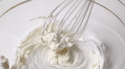 - Dùng phới đánh mịn phô mai mascarpone.