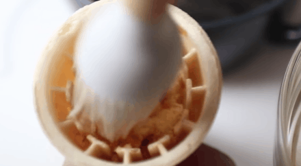 - Cuối cùng, bạn bóp kem thành hình chóp như chiếc kem để hoàn thành. Bạn có thể đặt bánh ốc quế này trong tủ lạnh cho phần kem đông lại 1 chút.