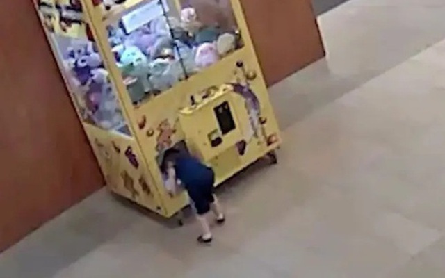 Cậu bé bị mắc kẹt trong máy gắp thú khi chui vào để lấy đồ chơi.