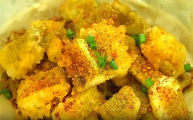 Bước 4: Lúc này, bạn đừng vội gắp ngay ra đĩa, ăn ngay mà hãy rắc chút bột tiêu, gia vị, ớt bột và lượng bột thì là thích hợp vào. Nếu bạn thích ăn cay hơn thì bạn có thể cho thêm ớt tươi băm vào, đảo đều. Sau đó thêm hành lá xắt nhỏ là hoàn thành. Nếu nhà bạn có trẻ em cũng có thể thay thế những gia vị này bằng nước sốt chua ngọt hoặc sốt cà chua cũng rất hấp dẫn.