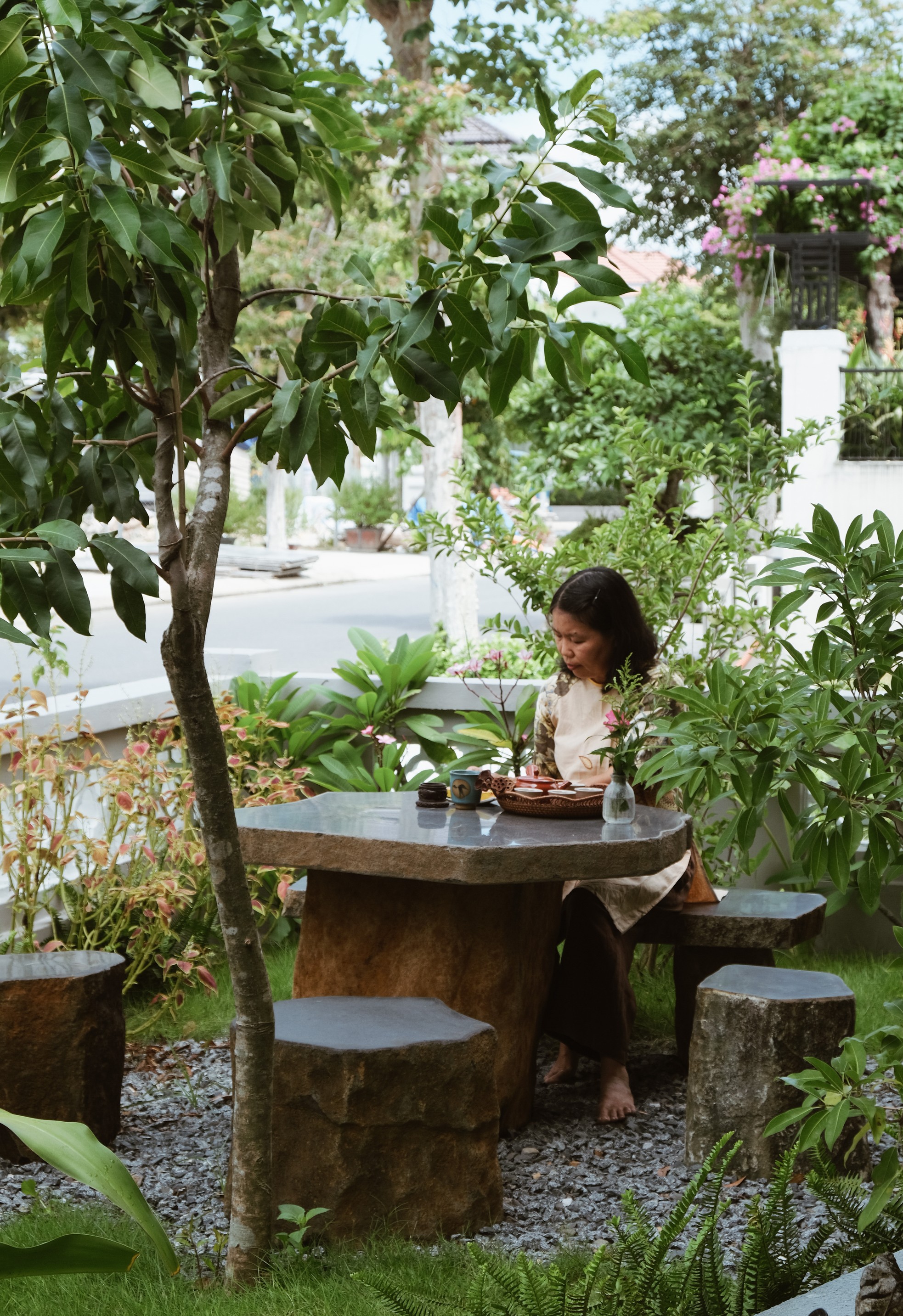 Bám sát tinh thần kiến trúc mang âm hưởng Á Đông cùng tinh thần Phật giáo và thiền định, nhóm kiến trúc sư của An Nam ưu tiên sử dụng những vật liệu tự nhiên truyền thống mang năng lượng chữa lành cùng những không gian đóng mở tinh tế đan xen cây xanh, vừa phù hợp với khí hậu nhiệt đới vừa mang lại cảm giác thoải mái và bình yên.