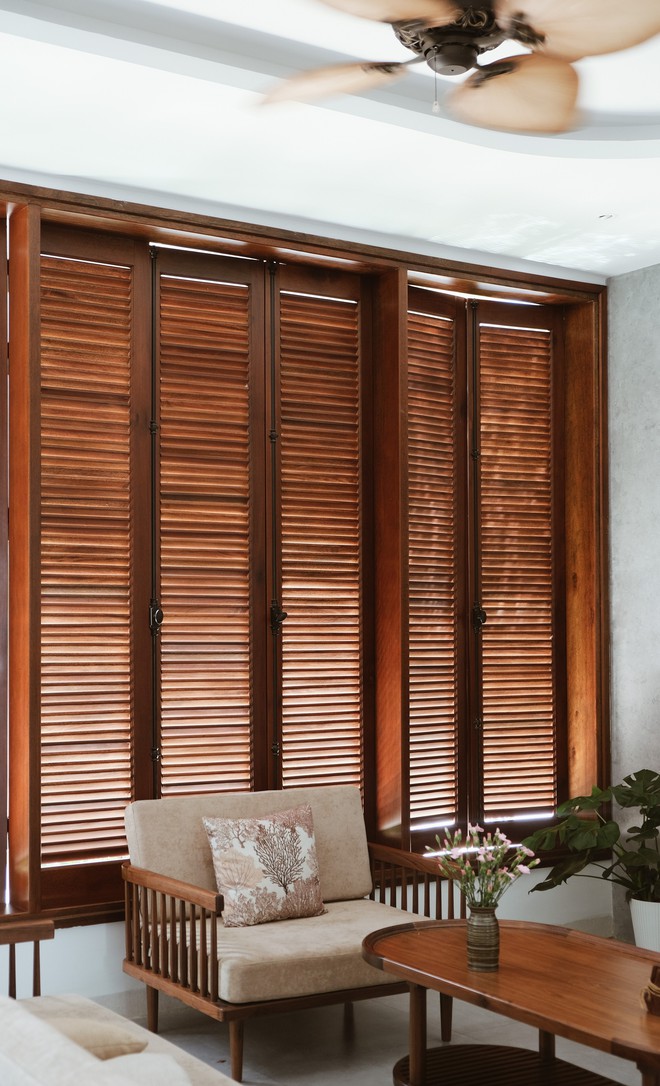 Hệ cửa gỗ lá sách.không chỉ có tác dụng phân chia riêng tư cho từng khu vực mà còn có tác dụng đối lưu không khí, không để cho không khí ở trạng thái tĩnh.