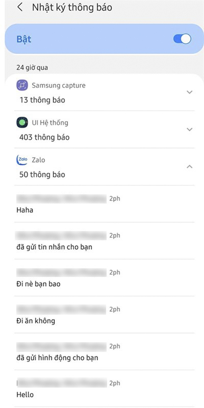 Bước 3: Chọn Bật Nhật ký thông báo lên > Chọn mục Zalo