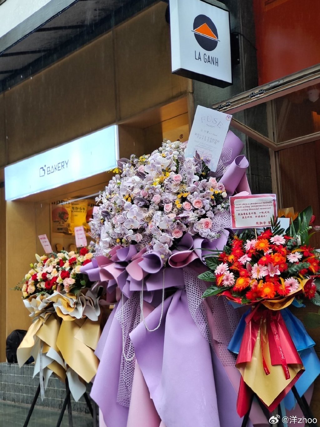 Một fan khác cũng ghi lại hình ảnh Chi Pu và quán phở với rất nhiều lẵng hoa chúc mừng khai trương (Ảnh: Weibo)