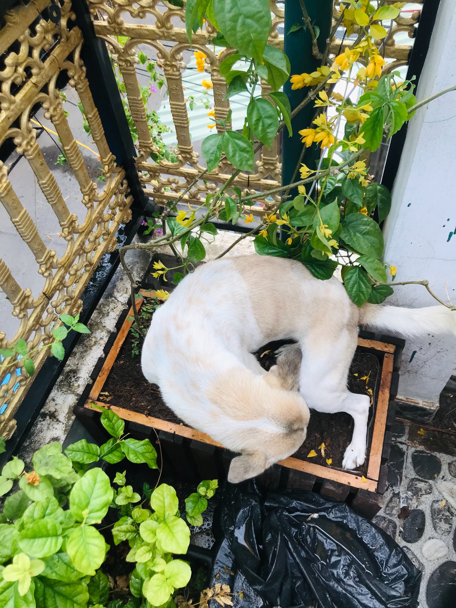 Cậu con trai nhỏ cũng phụ giúp bố mẹ trong việc trang trí lại ban công của gia đình.