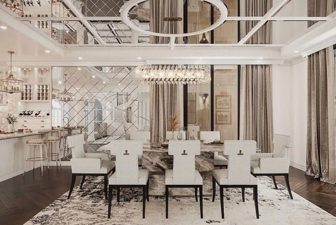 Ngôi biệt thự mới của Lý Nhã Kỳ có 4 tầng, được phủ trắng toàn bộ và xây dựng theo phong cách hiện đại, sang trọng như cung điện. Từ ngày có nhà mới, Lý Nhã Kỳ khá chăm khoe ảnh lên MXH hẳn. Cô thường xuyên khoe sương sương phòng ăn bên trong ngôi biệt thự, với tận 4 bàn ăn với 4 phong cách khác nhau. Đây sẽ là không gian lý tưởng cho những buổi tụ tập hội bạn giàu có của người đẹp này.
