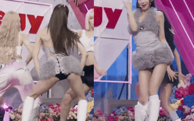 Cụ thể, Sana diện chiếc váy xám lông thú ngắn cũn cỡn, hở lưng khoe trọn bờ lưng trắng mịn, mảnh khảnh. Thế nhưng, vì thiết kế váy quá ngắn kết hợp với việc thực hiện vũ đạo khiến cho trang phục của cô bị tớn lên. Thậm chí, phần phía sau được buộc dây lỏng lẻo khiến mọi nữ idol liên tục gặp phải những khoảnh khắc hớ hênh, lộ quần bảo hộ.