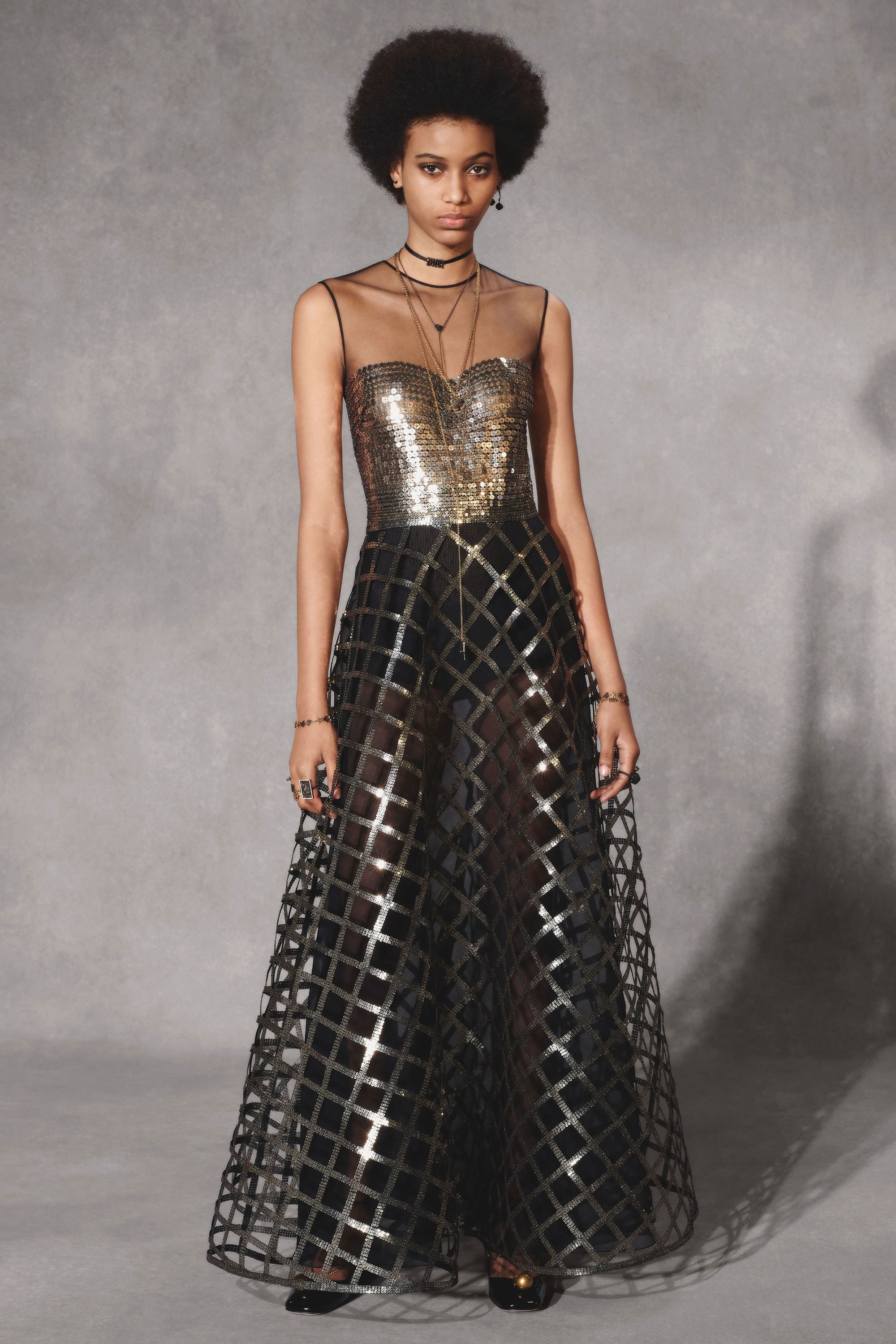 Váy vẫn là dáng không tay, tuy nhiên phần thân váy may tầng nhiều lớp tạo độ bồng bềnh khi di chuyển. Đây cũng là 1 thiết kế của nhà mốt Dior, váy thuộc BST Xuân 2018.