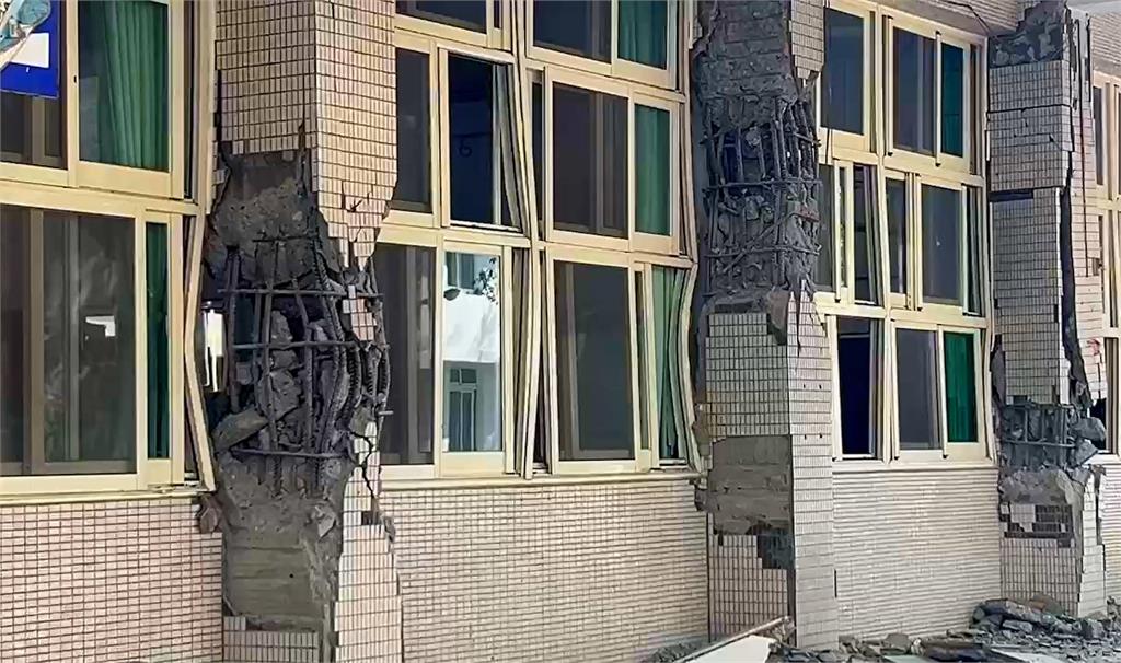 Tòa nhà bị ảnh hưởng nhiều nhất tại Trường Trung học Nữ sinh Hoa Liên sau trận động đất xảy ra vào ngày 3/4