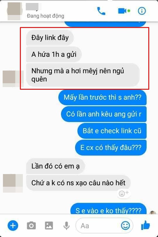Mà có phải một đứa nhắn hay nhắn 1 tin đâu, mà là nhiều bạn nhắn nhiều tin và anh bơ hết. Bọn em có nợ của anh cái gì không mà sao anh giấu ảnh với video của bọn em, đã vậy còn không có 1 lời giải thích cho bọn em. Cũng chuẩn bị vào đại học cả rồi, ảnh với video nếu anh không muốn đưa thì anh cứ giữ đi ạ. " - nam sinh bức xúc.