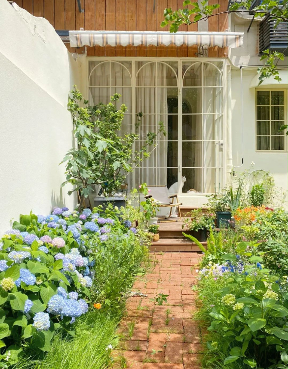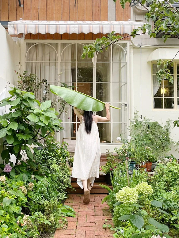 Sân vườn rộng 40m2 được Liangzhu chăm chút tỉ mỉ. Cô trồng rất nhiều loại hoa và cây cảnh để tạo không gian thư giãn gần gũi với thiên nhiên. Sân vườn được lát gạch đỏ, 2 bên là những loại hoa mọc tươi tốt tạo khung cảnh vô cùng thơ mộng.