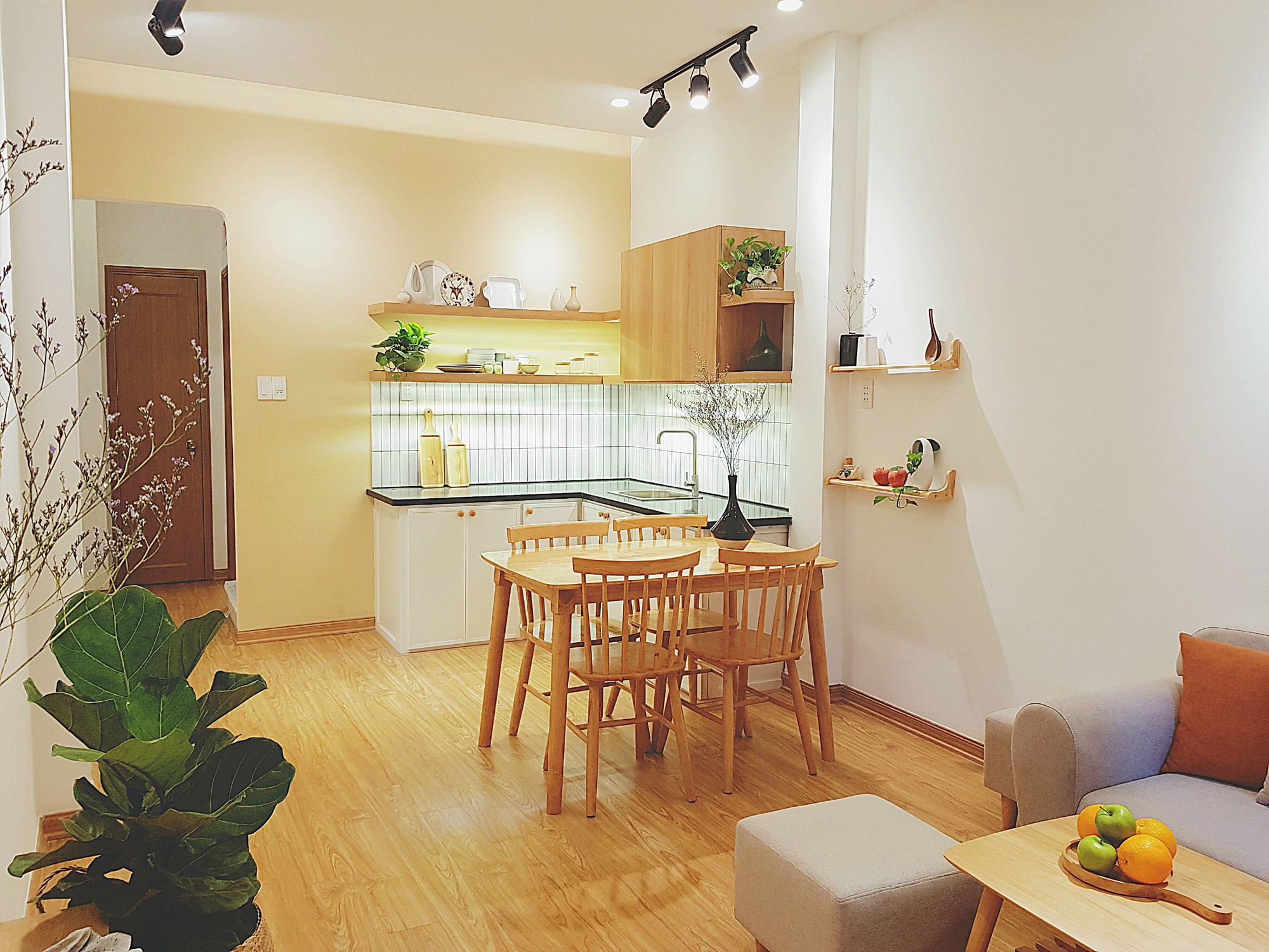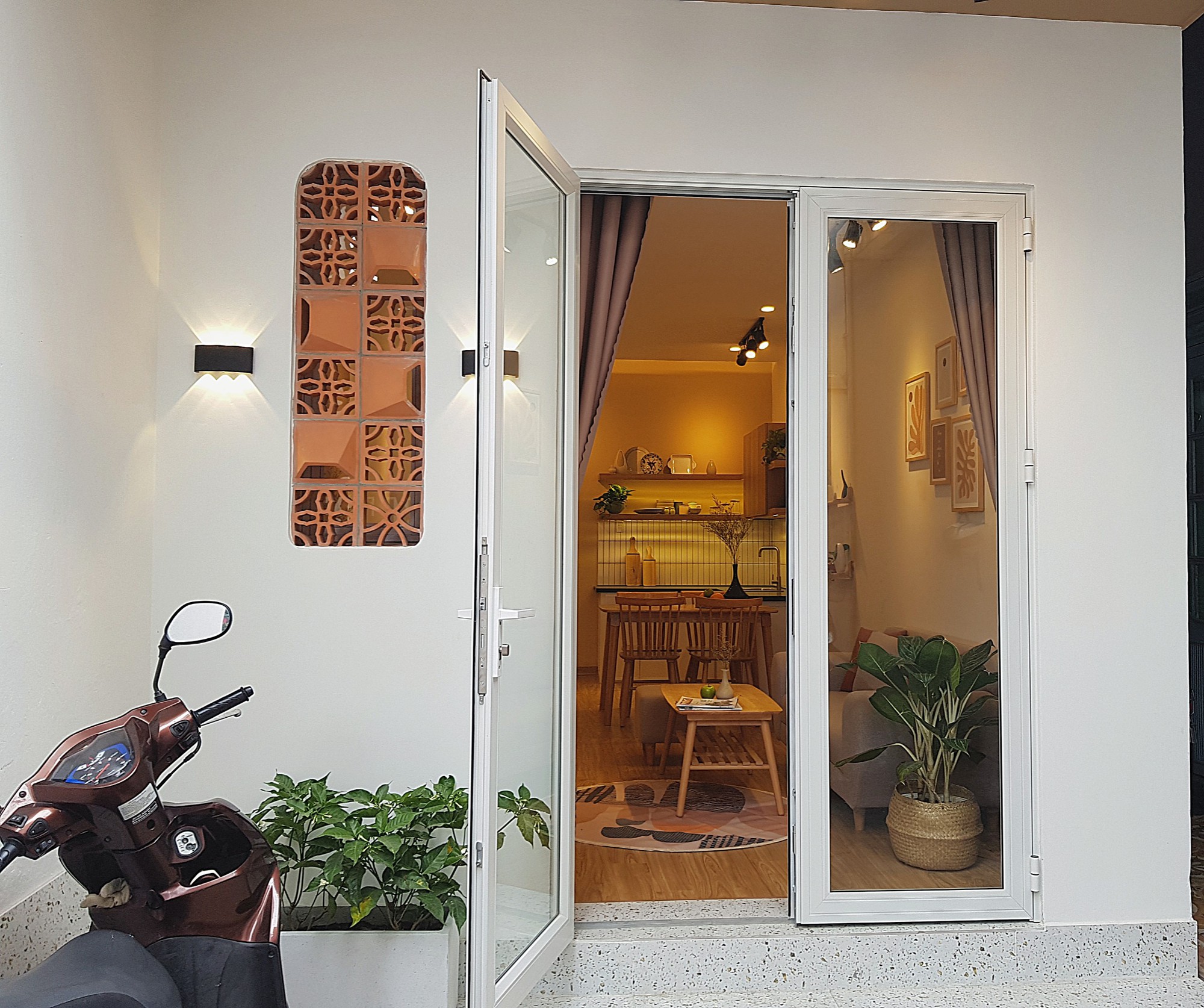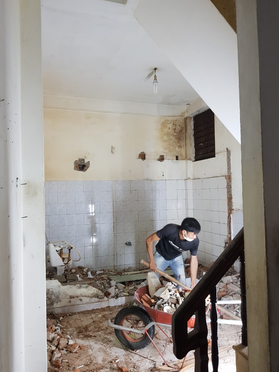 Hầu hết căn nhà được cải tạo lại, chỉ giữ khung nhà, cầu thang. Các vách tường, vách thạch cao, toilet, bếp, mặt tiền đều tháo gỡ, sau đó thăm tôn, chống thấm toàn bộ nhà. Làm lại trần thạch cao, chạy lại toàn bộ hệ thống điện, nước, sơn tít, bố trí lại đèn, thiết bị phòng tắm, màn rèm và 1 số nội thất cơ bản.