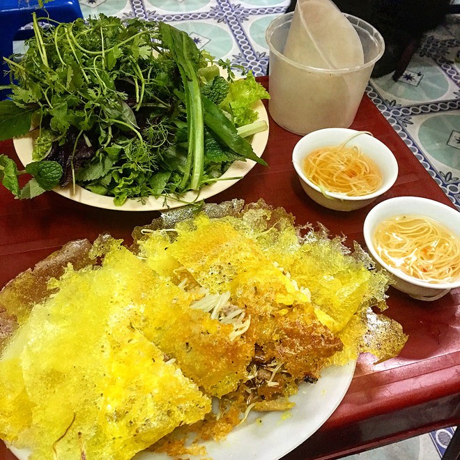 Chính vì lẽ đó mà bánh xèo ngõ 10 Tôn Thất Tùng mới được dân Y ưu ái đến vậy. Thử ghé vào quán, gọi mấy suất bánh xèo, bạn sẽ tròn xoe mắt vì mỗi suất chỉ 10k mà cực đầy đặn, bánh to, nhiều nhân, viền ngoài giòn rụm, ăn kèm rau sống tươi ngon, quyện cùng nước chấm chua ngọt vừa miệng thì cực "đã".