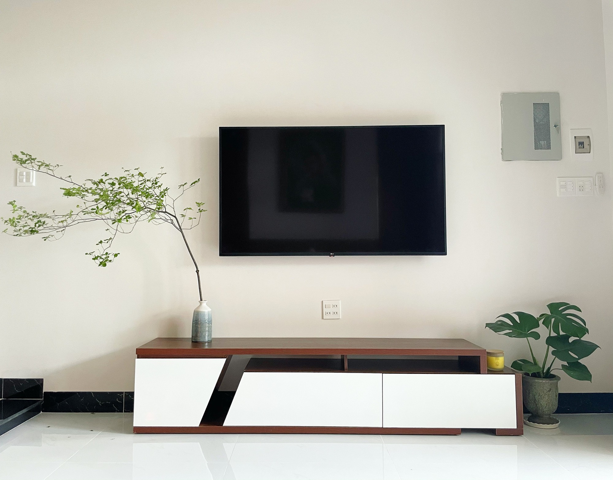 Tới những ngày lắp đặt vợ chồng mình lại không thể có mặt thường xuyên, chỉ theo dõi qua camera là chủ yếu, cũng may là mọi thứ vừa ý không phải chỉnh sửa nhiều. Điều đặc biệt hơn nữa là, tuy không có chủ đích gì nhưng mà bằng 1 cơ duyên gì đó, cuối cùng toàn bộ nhà mình đều theo 2 tone nâu và xám. Mình cũng thường điểm xuyết thêm hoa tươi và những chậu cây cây xanh cũng nhỏ nhỏ xinh xinh cho mát nhà, nhiều sức sống.