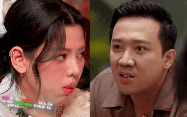 Hành động này được Trấn Thành nhìn trúng ngay tại chỗ và nhanh chóng nhắc nhở nhẹ cô nàng: “Muộii ơi, nhiệm vụ của em là lên chinh phục người ta chứ không phải ăn em ơi. Em bị ham ăn á”. MC người ta ngồi không có gì làm thì người ta mới ăn”. Lúc này, cô nàng cũng chỉ biết cười trừ.