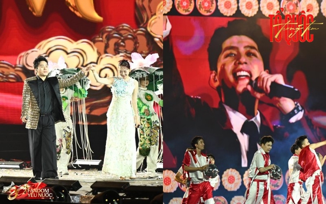 Ngay sau phần mở màn đầy xúc động, tam ca Đăng Dương - Tùng Dương - Võ Hạ Trâm xuất hiện, mang đến liên khúc cách mạng hào hùng, tái hiện khí thế sục sôi của những năm tháng lịch sử. Tiếng hát mạnh mẽ, giàu cảm xúc hòa quyện cùng dàn nhạc hoành tráng, tạo nên bầu không khí thiêng liêng trên khắp khán đài. Ca sĩ Đông Hùng bùng nổ với ca khúc bất hủ Lên Đàng, khơi dậy ngọn lửa nhiệt huyết và lòng quyết tâm trong hàng chục nghìn khán giả. Từng câu hát vang lên như lời hiệu triệu, thôi thúc ý chí vươn lên vì Tổ quốc.