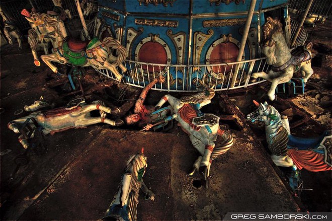 Không nhận ra công viên giải trí nổi tiếng một thời nay chỉ còn là những đống đổ nát, gỉ sét và tan hoang