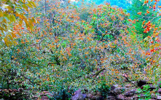 Những cây hồng cổ thụ có rêu phong phủ đầy càng khiến du khách thích thú.
