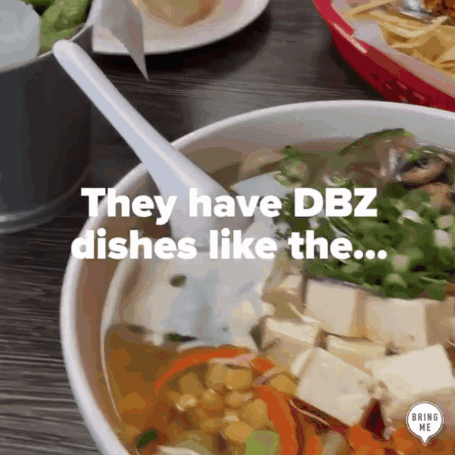 Điều làm người ta ấn tượng nhất chính là menu phục vụ hàng loạt các món khiến từng xuất hiện trong phim. Mỗi phần ăn đều được chăm chút, đầu tư tỉ mỉ để mô tả đúng phiên bản gốc nhất. Đảm bảo bạn sẽ có dịp hóa thân thành Vegeta, Gogeta hay Kaioken để "húp trọn" những tô mì, chiếc bánh hấp dẫn.