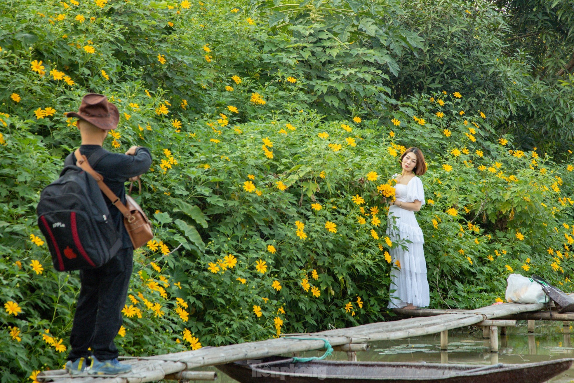 Hoa nở dày đặc bên những cây cầu gỗ chênh vênh tạo nên không gian thơ mộng, "đứng góc nào cũng ra ảnh đẹp", bạn Ái Duyên chia sẻ