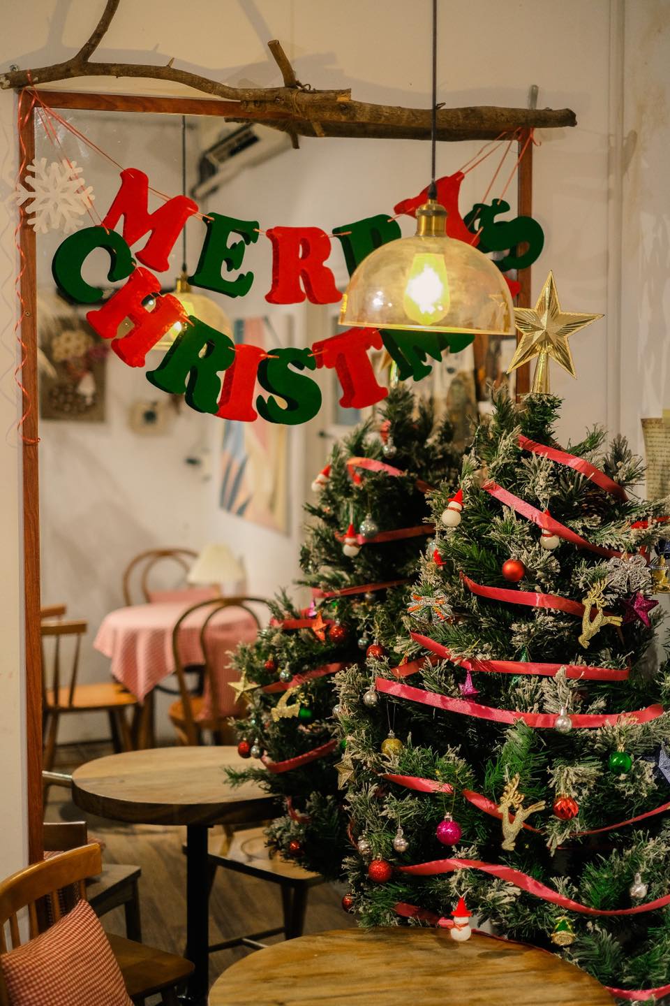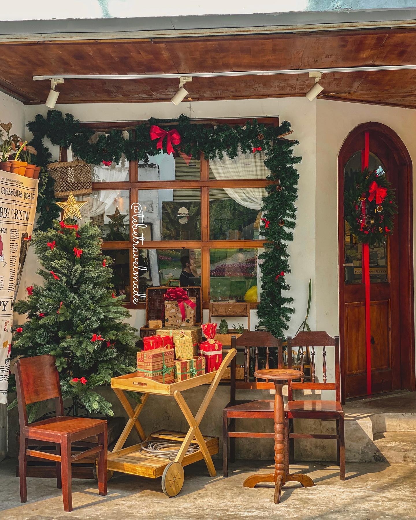 Nếu muốn có một địa điểm chụp hình nhỏ gọn ấm cúng, vừa trò chuyện vừa sẵn tiện chuyện trò, ăn uống thì ghé ngay các quán cà phê vừa trang trí Giáng sinh xong.
