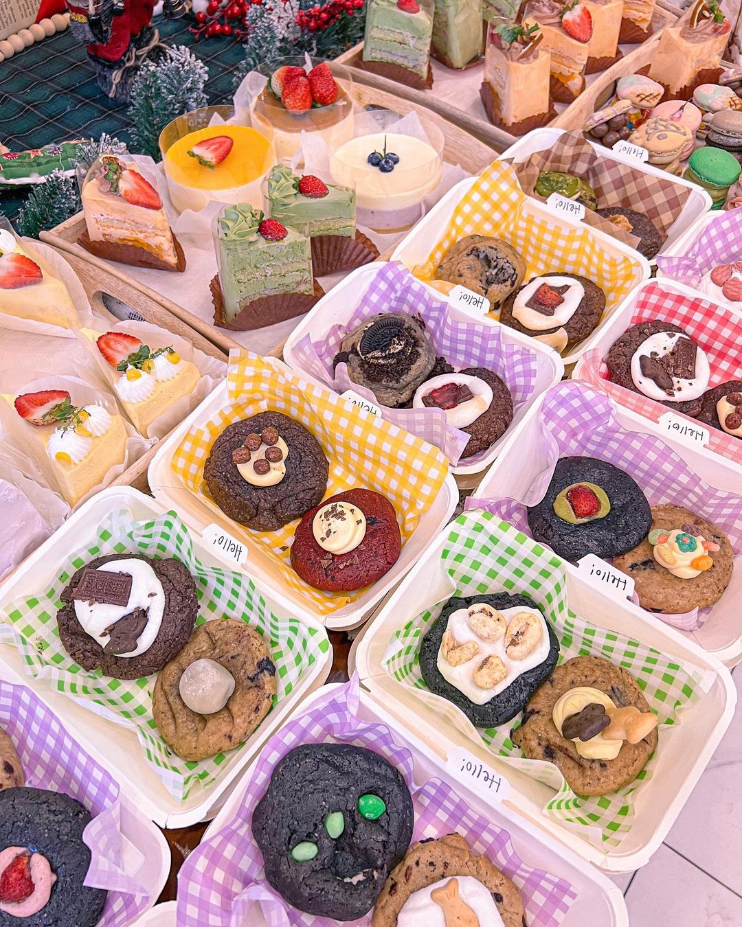 Điểm nhấn của The Seat Cafe là các loại bánh ngọt và đồ uống cũng được trang trí theo phong cách Noel kì công như bánh quy chấm sữa được nặn hình người, bánh ngọt được vẽ thành hình cây thông... trông vô cùng xinh xắn, đáng yêu.