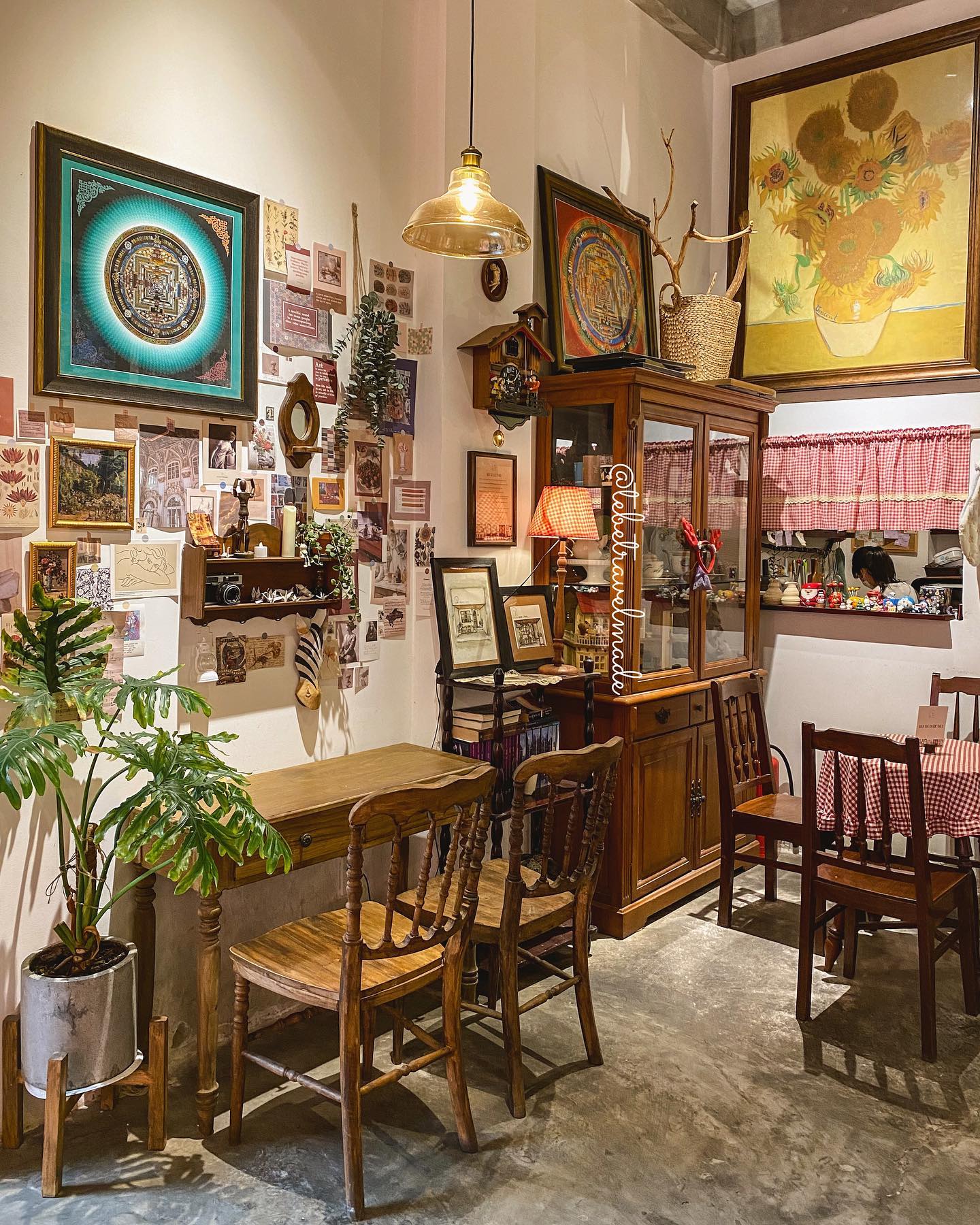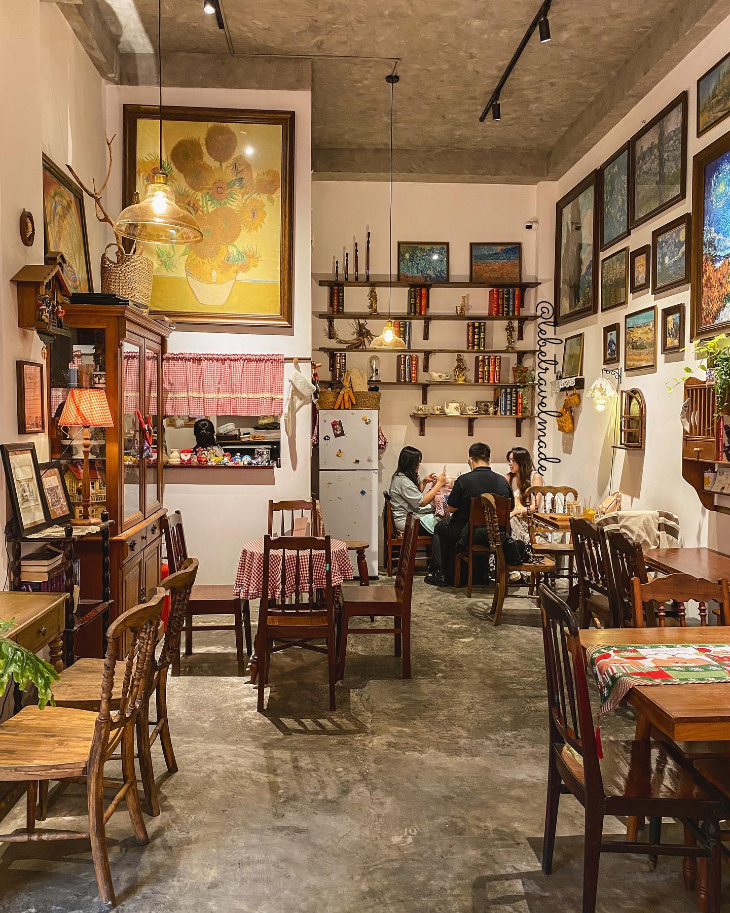 Đến đây, bạn sẽ có cảm giác như thể đang đón Giáng sinh nơi Tây phương xa xôi bởi lối bày trí bàn ghế gỗ, cây thông, đồng hồ quả lắc, loạt tranh đầy ấn tượng của Vincent van Gogh treo khắp nơi... cùng list nhạc Giáng sinh được bật xuyên suốt. Ngoài bánh và nước, quán còn bán nhiều vật dụng nhỏ xinh như cốc handmade cho bạn mua về làm quà.