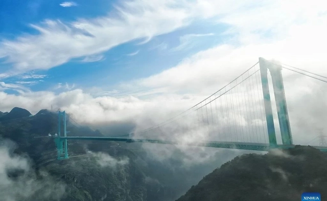 Với nhịp chính dài 1.420 m, đây là cây cầu treo dầm thép có nhịp dài nhất thế giới ở địa hình đồi núi, theo chính quyền tỉnh Quý Châu.