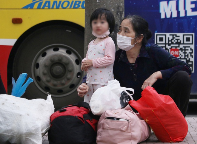 Tại các bến xe ở Hà Nội, nhiều người dân dẫn theo trẻ nhỏ cũng hối hả trở lại thành phố để chuẩn bị cho ngày làm việc mới.