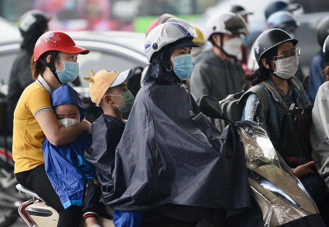 Người dân lỉnh kỉnh đội mưa trở về Hà Nội sau nhiều ngày nghỉ lễ