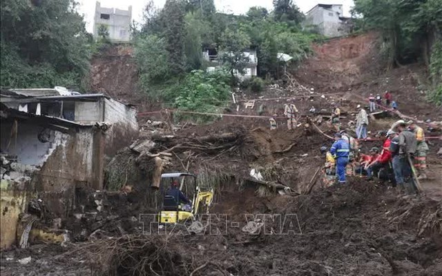 Hiện trường vụ lở đất sau những trận mưa lớn tại Huauchinango, bang Puebla, Mexico, ngày 13/10/2025 (Ảnh: THX/TTXVN)