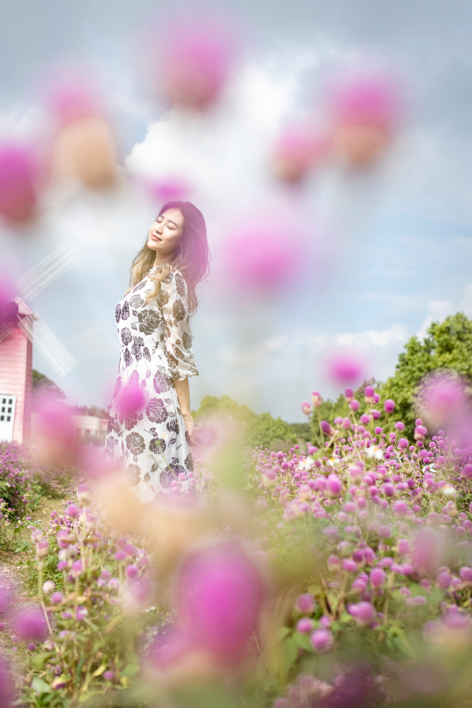 Thời điểm chụp bách nhật đẹp nhất là vào buổi sáng khi ánh nắng dịu nhẹ, hoặc vào tầm chiều nắng màu vàng mật ánh lên những bông hoa. Bên cạnh sắc tím của bách nhật, cánh đồng hoa này còn nổi bần bật với màu vàng rực của những bông cúc sao băng, sắc trắng tinh khôi của màu cúc họa mi, của tà áo dài duyên dáng. Tất cả tạo nên một bức tranh thơ mộng ở chốn ngoại ô thành phố này.