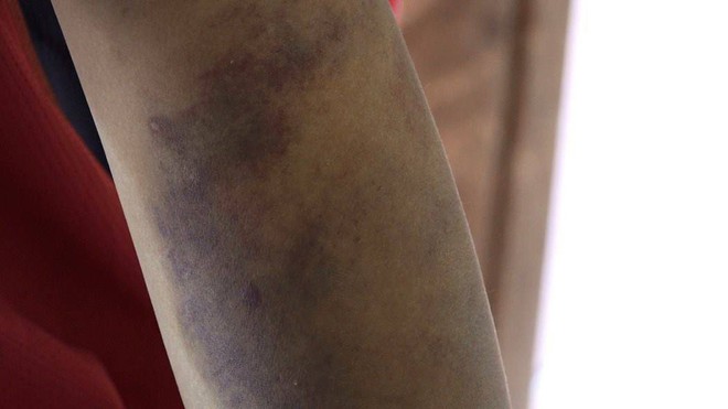 Bé H. bị đánh bầm tím mặt, cơ thể