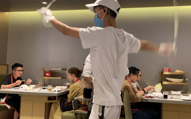 Hình ảnh dịch vụ múa mì được thực hiện tại nhà hàng của Haidilao