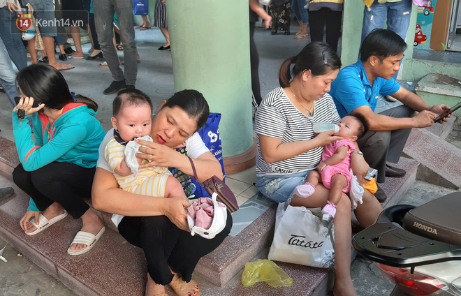 Rất nhiều gia đình buộc phải mang theo con nhỏ cùng xếp hàng để chờ đợi được tiêm vắc xin cho con trong tâm trạng mệt mỏi.