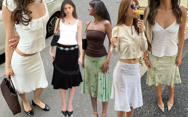 Các biến tấu của chân váy midi cũng rất đa dạng: từ dáng xòe mềm mại, dáng bút chì ôm sát cho đến chân váy chữ A trẻ trung. Nhờ vậy, item này dễ dàng "len lỏi" vào nhiều phong cách khác nhau, từ nàng thơ dịu dàng đến vibe cool-girl cá tính. Dưới đây là các bản phối chân váy lửng đang được hội IT girl ưa chuộng nhất: