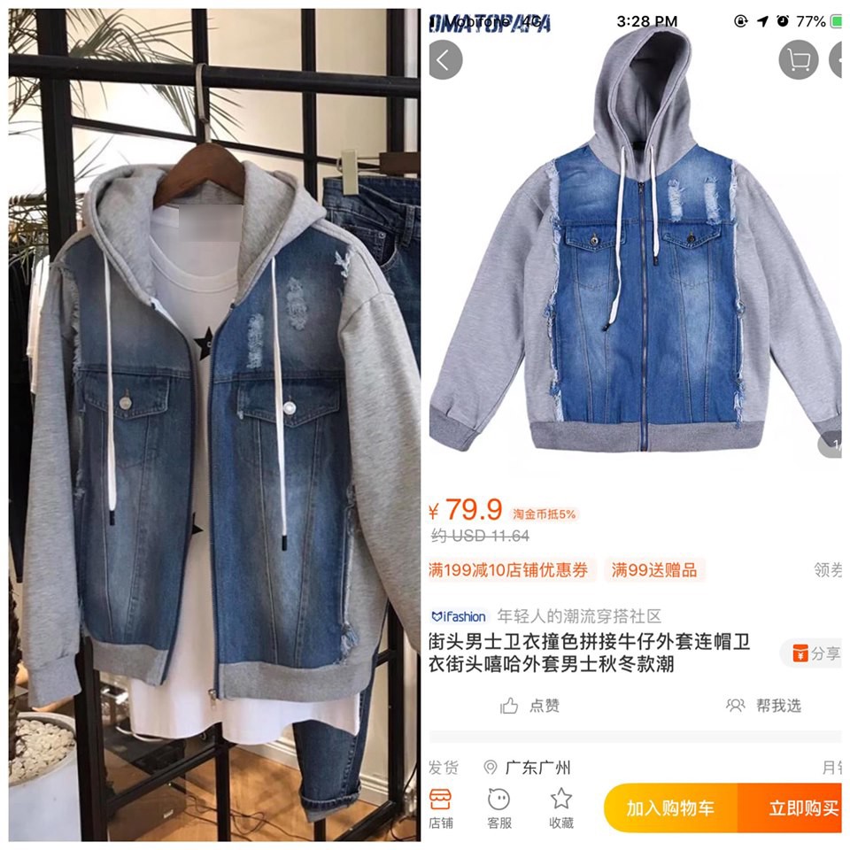 Chiếc áo là nguồn cơn của drama này cũng được bán trên Taobao và giá order về tay rẻ hơn rất nhiều so với shop M.