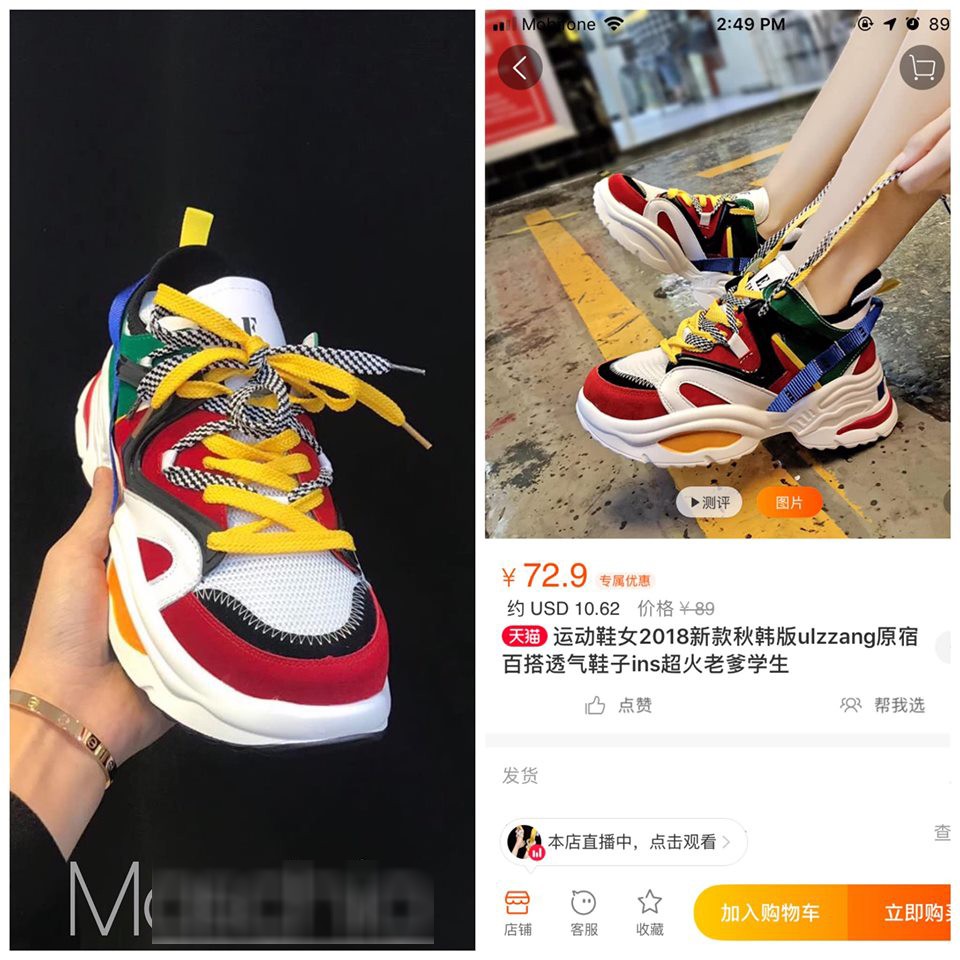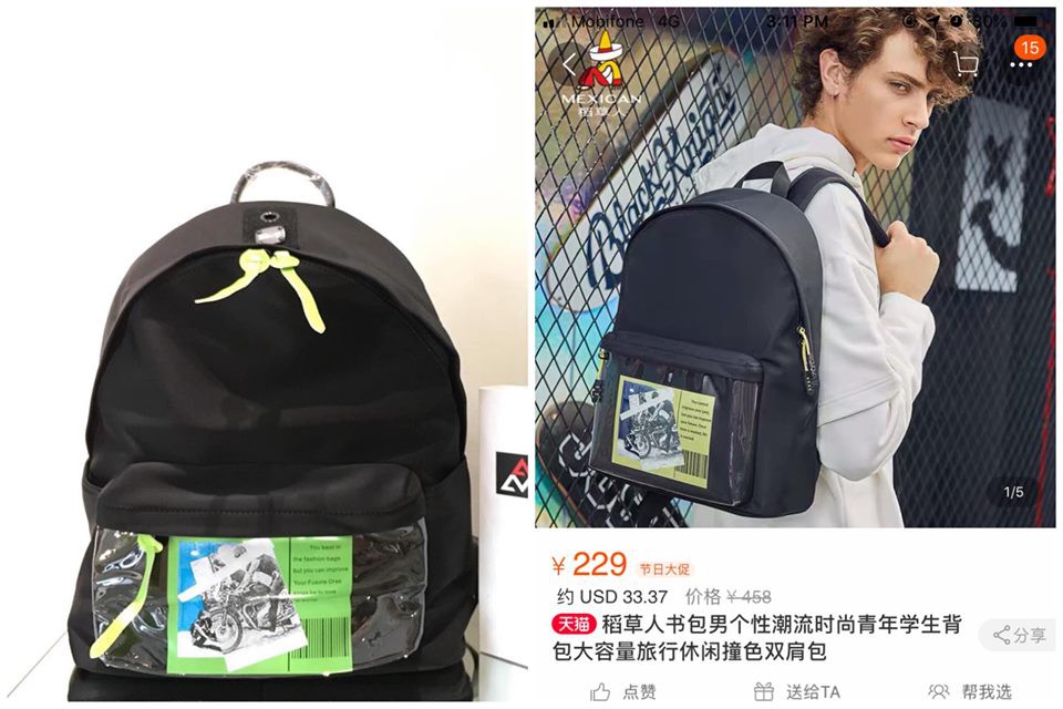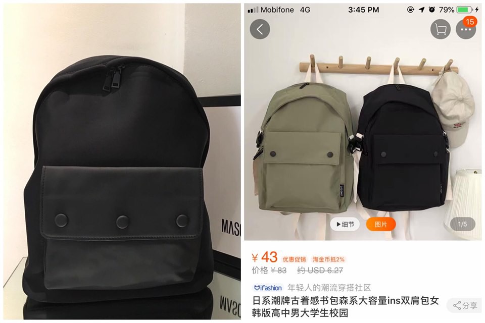 Không những vậy, tất tần tật những sản phẩm được shop M tự miêu tả là "We do fashion like no other" (Dịch nôm na là thời trang của chúng tôi độc đáo, không đụng hàng) từ quần áo đến giày dép, balo đều giống 80% thậm chí y hệt những sản phẩm từ trang web thương mại điện tử lớn nhất Trung Quốc.