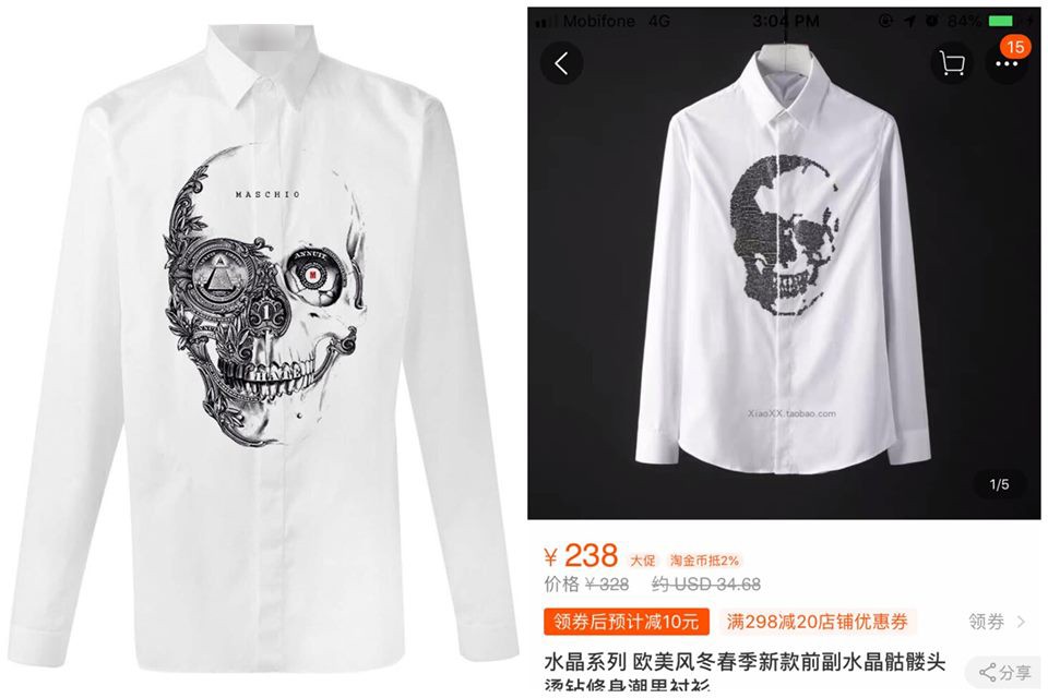 Giữa bão thị phi của 2 bên, nhiều cư dân mạng đã nhanh tay nhanh mắt tìm ra một loạt ảnh chứng minh các sản phẩm của shop M. đều "vô tình" na ná các sản phẩm được bán trên trang Taobao. Đầu tiên là chiếc áo "oan nghiệt" - nơi khởi đầu của màn thị phi này. Chiếc áo này được M. tự hào là hàng thiết kế, luôn cháy hàng. Tuy nhiên, chỉ cần search một chút trên Taobao là bạn sẽ thấy một loạt rất nhiều sản phẩm y chang có giá đủ mức từ trên trời xuống dưới đất.