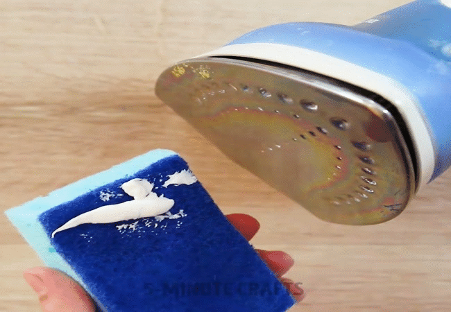 - Bạn chỉ cần dùng một tấm xốp với kem đánh răng và chà lên bề mặt của bàn là.