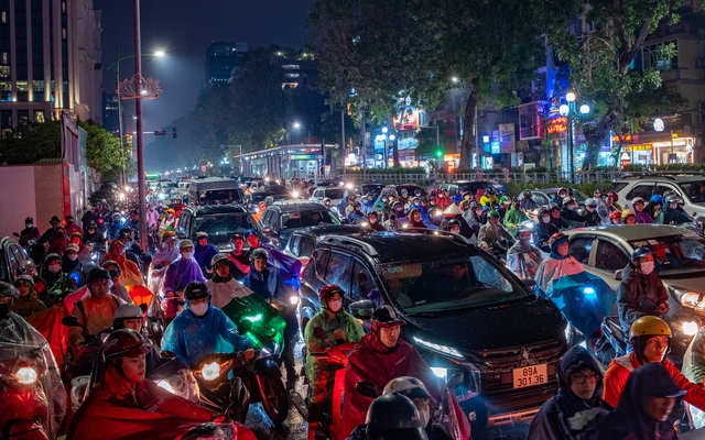 Cơn mưa tầm tã đúng giờ cao điểm tan tầm khiến người dân trên nhiều đoạn đường di chuyển khó khăn