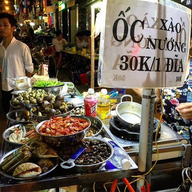 Phố Tây là nơi nhộn nhịp nhất Sài Gòn với nhiều hàng quán luôn sáng đèn. Đến đây không phải bạn sẽ thưởng thức bữa ăn ở các nhà hàng Tây Âu sang trọng mà là hòa vào không khí ẩm thực đường phố hấp dẫn. Các hàng xiên nướng ven đường, các quán sinh tố, xe ốc, mực chiên nước mắm hay những trạm dừng chân cafe khi đi dạo quanh khu này.