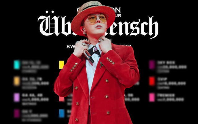 Tối 29/9, MXH lan truyền loạt bài đăng được cho là seat map bị rò rỉ của concert G-Dragon tại Hà Nội. Những hình ảnh này lại khiến dân tình xôn xao, đứng ngồi không yên. Seat map được chia thành vô số hạng vé, khu vực đứng ngồi, mô phỏng sân khấu ở Ocean City. Đáng chú ý, giá vé dao động trong khoảng 1 - 20 triệu đồng. Đây là mức giá cao so với mặt bằng chung concert ở Việt Nam, khiến không ít khán giả tranh cãi về khả năng chi trả.