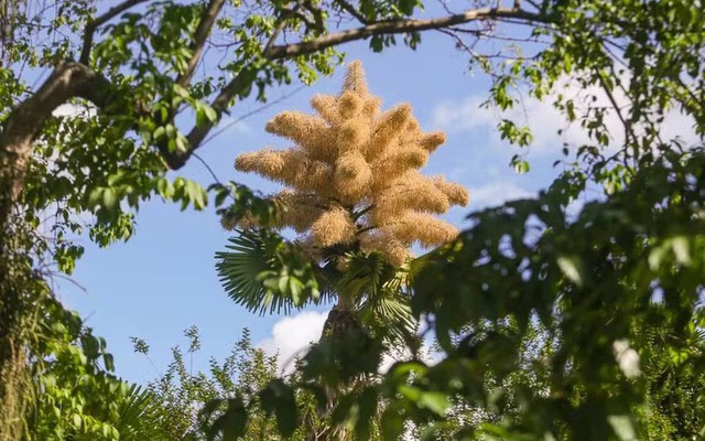 Người dân và du khách đang đổ xô về đây để chiêm ngưỡng cây cọ ra hoa