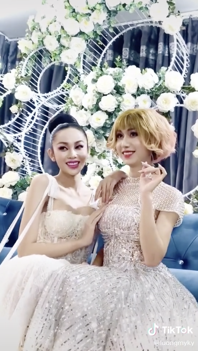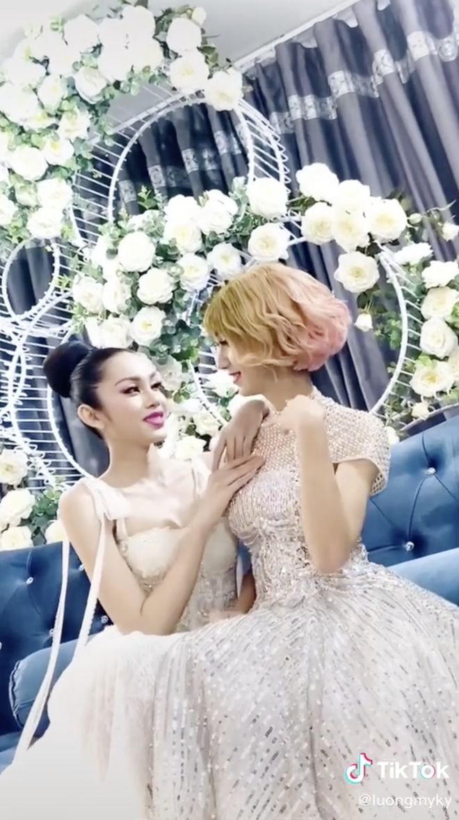Trong ảnh, cả 2 Lương Mỹ Kỳ và Lynk Lee cùng lên đồ lộng lẫy, trang điểm cầu kì. Nếu Mỹ Kỳ chọn cho mình chiếc váy xẻ cao, khoe trọn đôi chân thẳng tắp thì bộ trang phục của Lynk Lee còn có thêm nơ hồng cực lớn làm điểm nhấn.
