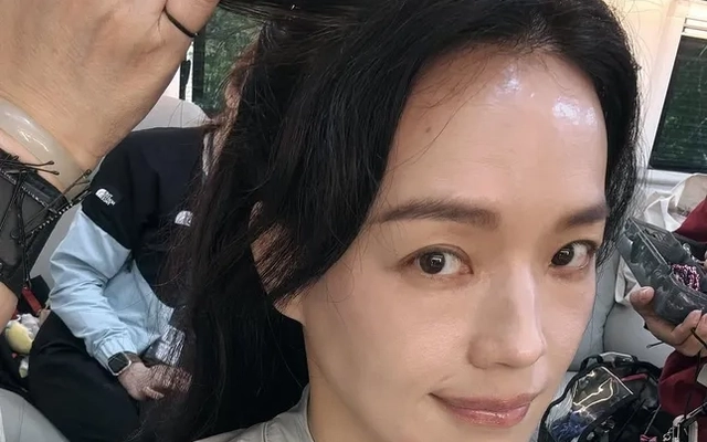 Trong ảnh, nữ diễn viên sinh năm 1976 mặc áo khoác xám đơn giản, đang được hỗ trợ làm tóc. Điều gây chú ý là gương mặt của Thư Kỳ trong trạng thái nguyên bản, chưa trang điểm.