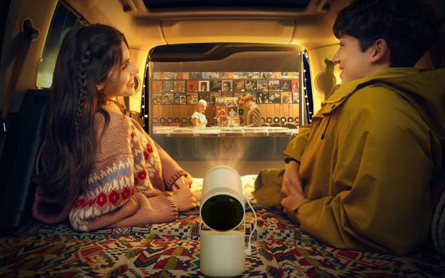 Và đó là lý do ra đời của các sản phẩm máy chiếu di động, kết hợp được tính di động và kích thước trình chiếu siêu rộng của TV, thậm chí là còn lớn hơn thế nữa. Nổi bật hơn cả vẫn là chiếc Samsung Freestyle, với thiết kế gọn gàng và trọng lượng chỉ khoảng 830g, có thể cầm được bằng một tay. Tất cả các phụ kiện của máy bao gồm củ sạc, dây Type-C và điều khiển có thể được đặt hết vào một chiếc hộp, để dù bạn có đi chơi bằng xe máy, ô tô hay thậm chí máy bay cũng rất tiện đem theo.