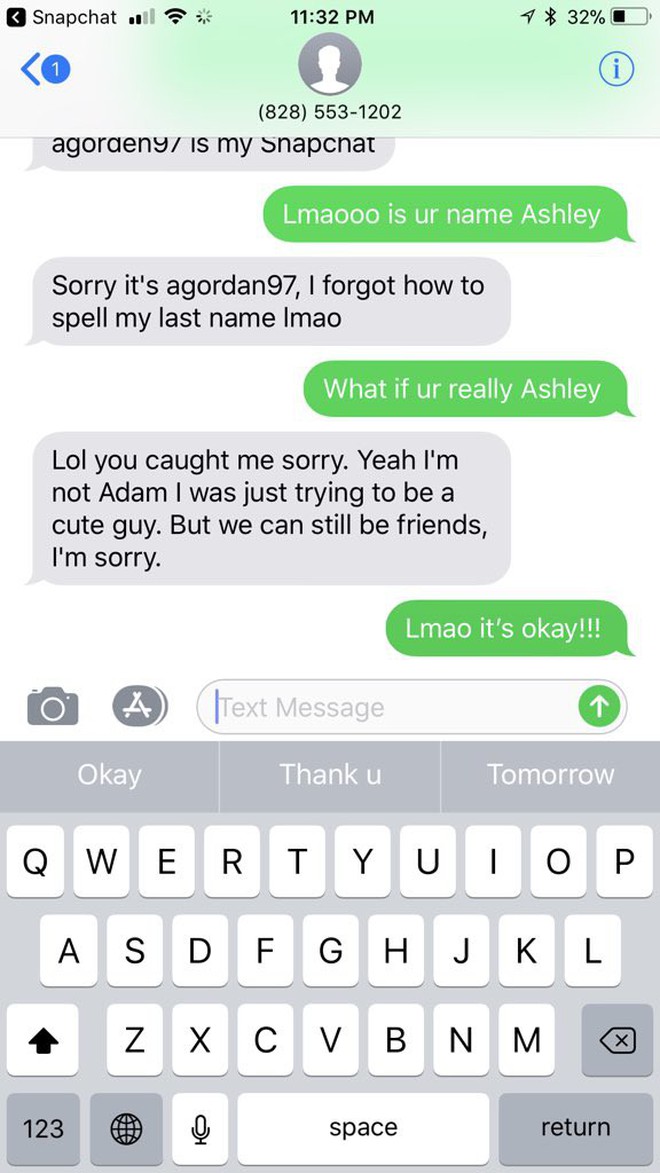 - Tôi xin lỗi, tôi không phải là Adam nhưng đã trả vờ là một "chàng trai đáng yêu". Nhưng chúng ta vẫn làm bạn nhé?