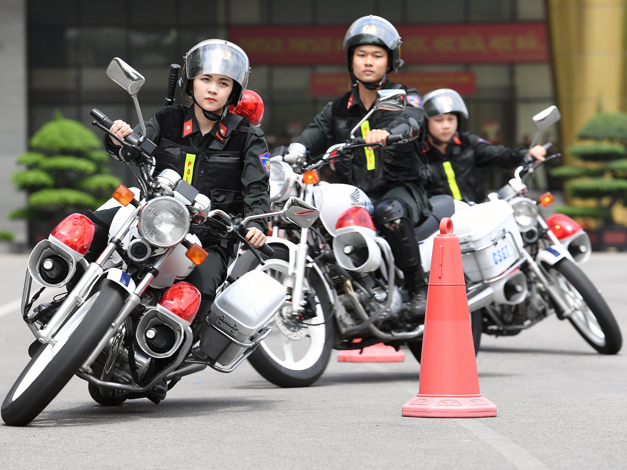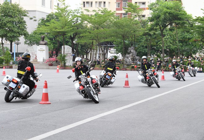 Đây cũng là các phương án sẽ được áp dụng thực tế trong công việc khi phải dẫn đoàn hoặc trấn áp các phương tiện vi phạm... Một bài biểu diễn khiến mọi người trầm trồ khi 2 đoàn xe ngược chiều theo đội hình qua chướng ngại vật với tốc độ cao mà không gây xáo trộn đội hình.